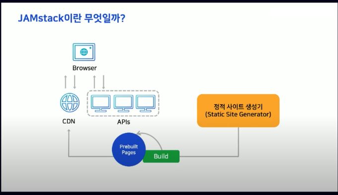 - JAMstack은 주로 정적 사이트 생성기(Static Site Generator)를 이용하게 됨