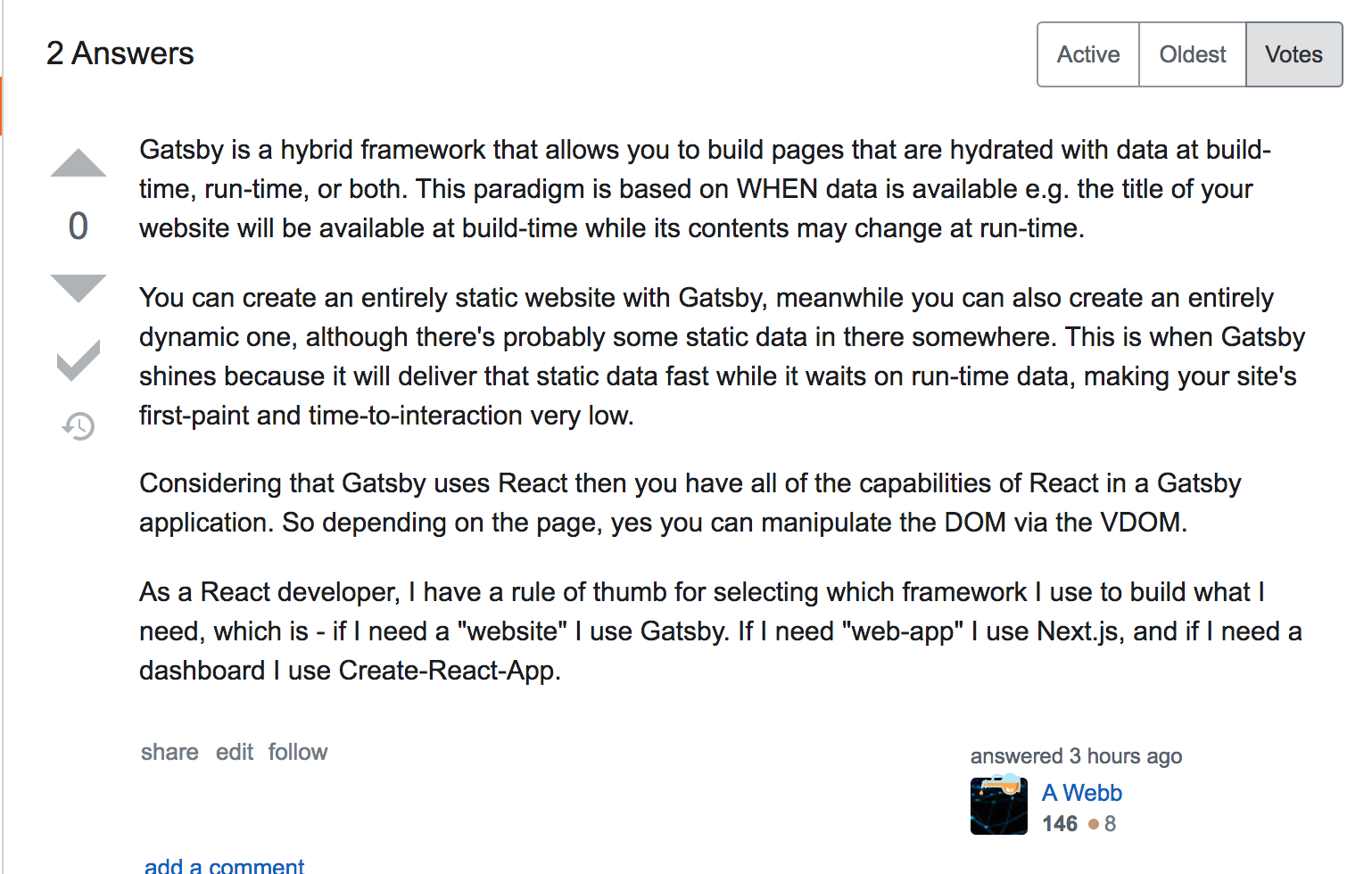 React와 Gatsby의 관계(스택오버플로우에 질문하고, 처음으로 reputation 10을 get!)Web Dev/3. React 관련 2020. 12. 23. 19:56728x90