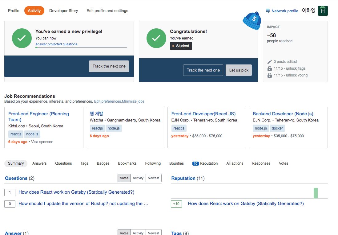 그리고 이질문을 통해서 처음으로 Reputation 10을 얻었다!!! 개발이 은근 꽤 재밌는것 같다.