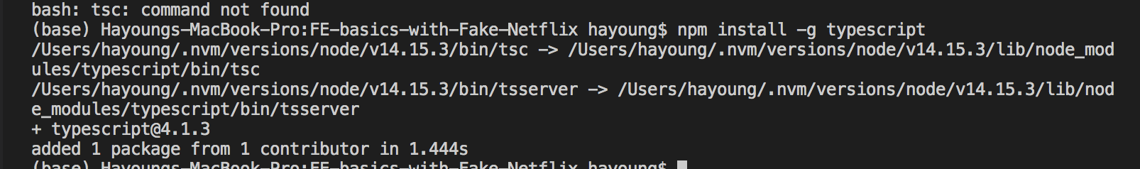 내 컴퓨터에 설치한 화면 - 이제 .ts 파일을 컴파일할 수 있다.