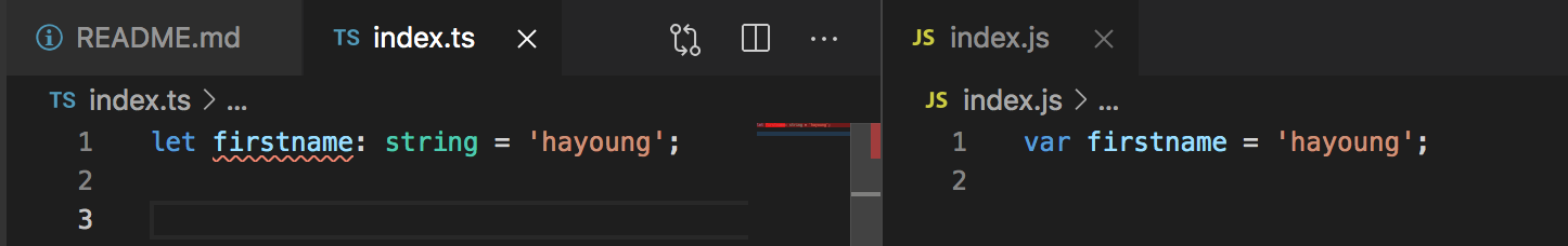 - 우선 typescript 파일을 사용하기 위해서는 .ts 로 끝나는 파일을 작성하면 된다.