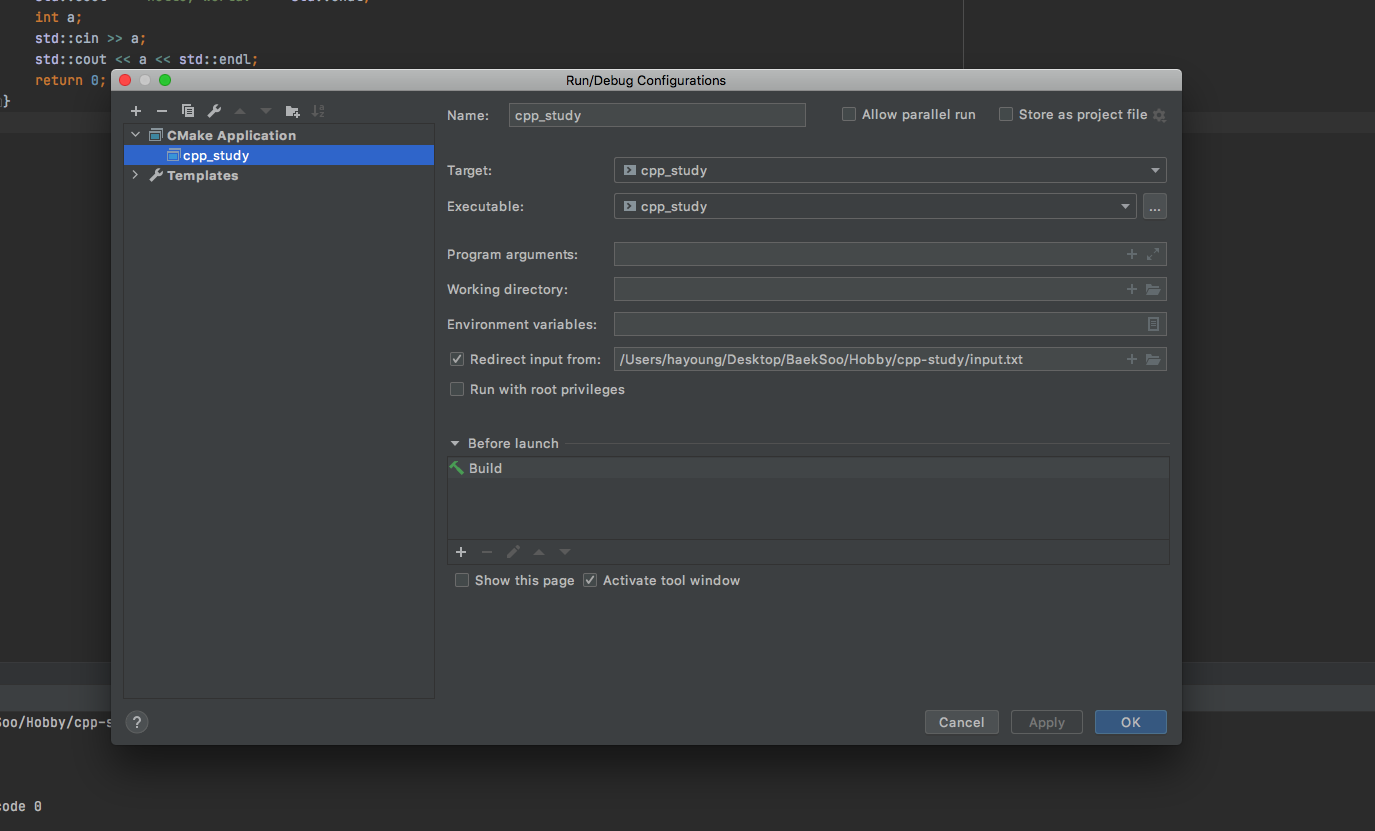 사실 편한진 잘 모르겠고... 백준 문제 풀때처럼 input이 많을때 console에서 계속 입력하면 너무 화가 날것 같아서 익숙하지 않지만 설정을 찾아봤다. 그랬더니 Run > edit configuration 에서 Redirect input from 기능을 찾았다.