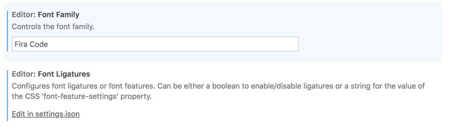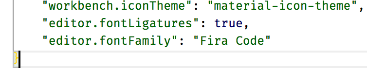 Ligatures 설정 Ligatures 설정의 경우에는 나는 json 파일내에서 수정해야 했는데, 이를 true 라고 설정하면 된다.