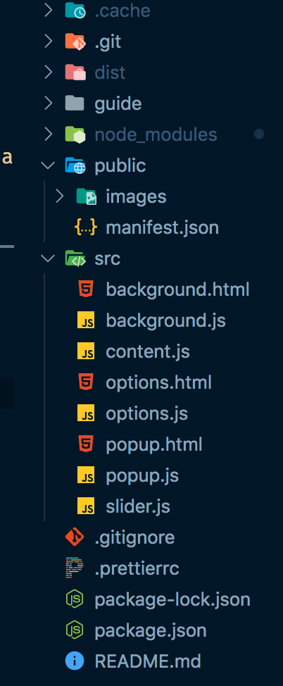 내 파일 목록(아직 지울 것도 좀 있는...) { "name": "1week-chrome-extension", "version": "1.0.0", "description": "- [Getting started](https://developer.chrome.com/docs/extensions/mv2/getstarted/) - [developer chrome](https://developer.chrome.com/) - [API reference](https://developer.chrome.com/docs/extensions/reference/#popups)", "main": "index.js", "scripts": { "test": "echo \"Error: no test specified\" && exit 1", "copy": "cp -R public/ dist", "bg": "parcel src/background.js", "content": "parcel src/content.js", "popup": "parcel src/popup.html", "options": "parcel src/options.html", "develop": "npm-run-all --parallel copy bg content popup options", "build:bg": "parcel build src/background.js", "build:content": "parcel build src/content.js", "build:popup": "parcel build src/popup.html", "build:options": "parcel build src/options.html", "build": "npm-run-all --parallel copy build:bg build:content build:popup build:options" }, "repository": { "type": "git", "url": "git+https://github.com/hayoung0Lee/toy-chrome-extension.git" }, "author": "", "license": "ISC", "bugs": { "url": "https://github.com/hayoung0Lee/toy-chrome-extension/issues" }, "homepage": "https://github.com/hayoung0Lee/toy-chrome-extension#readme", "dependencies": { "parcel-bundler": "^1.12.4", "react": "^17.0.1", "react-dom": "^17.0.1" }, "devDependencies": { "npm-run-all": "^4.1.5" } }이건 package.json 파일인데, parcel과 여러 entry point를 동시에 build하기 위해 npm-run-all 을 사용했다.