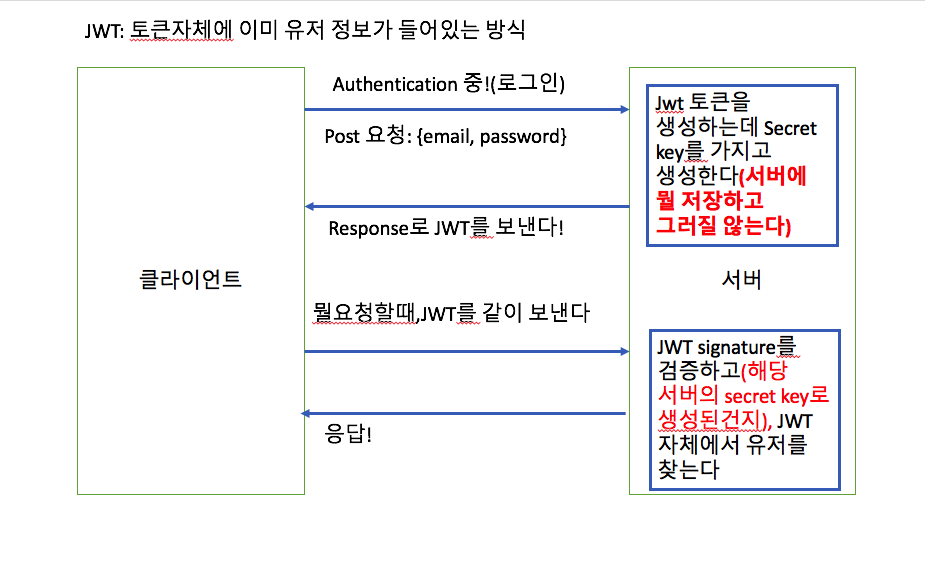 3. JWT는 쿠키를 써서 처리하지 않고, JSON web Token을 Authorization을 위해 사용하는 것이다.