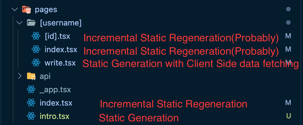 - username/index page 과 username/[id] page: 개인 블로그의 메인화면과, 조회하는 글이 보이는 화면인데, 종종 변화는 있을 것이지만 변화가 항상 있는 것은 아니라 ServerSide Rendering 이나, Incremental Static Regeneration 중에 고민중인데, preview mode라는것도 알아보기로 생각중