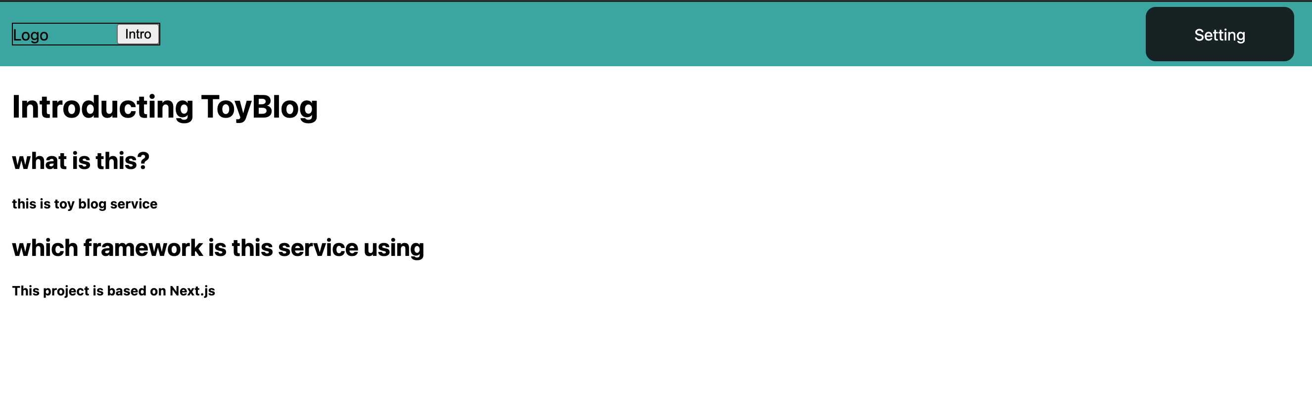 import Head from "next/head"; import React from "react"; import { GetStaticProps } from "next"; import testDB from "../utils/testDB.json"; import { IntroType } from "../utils/types"; export const getStaticProps: GetStaticProps = async (context) => { const introData: IntroType[] = testDB["intro"]; return { props: { introData, }, // will be passed to the page component as props }; }; interface Props { introData: IntroType[]; } // Static Generation const Intro: React.FC<Props> = ({ introData }) => { console.log(introData); return ( <div> <Head> <title>Introducting ToyBlog</title> <link rel="icon" href="/favicon.ico" /> </Head> <h1>Introducting ToyBlog</h1> {introData.map((d, index) => { return ( <div key={index}> <h2>{d.question}</h2> <h5>{d.answer}</h5> </div> ); })} </div> ); }; export default Intro;위의 Intro 페이지는 Intro 관련 데이터를 가져와서 빌드하고나면 변경사항이 없는 것을 가정한 페이지이다. Next.js에서는 이런 경우 GetStaticProps를 통해서 데이터를 가져와서 build time때 화면을 생성할 수 있다.
