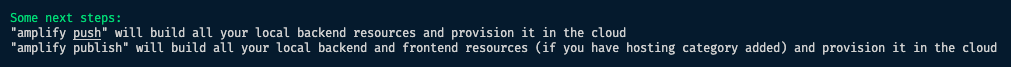 - amplify publish: 로컬의 백엔드와 프론트엔드 리소스를 모두 빌드해서 클라우드 내에서 볼수 있게 된다.
