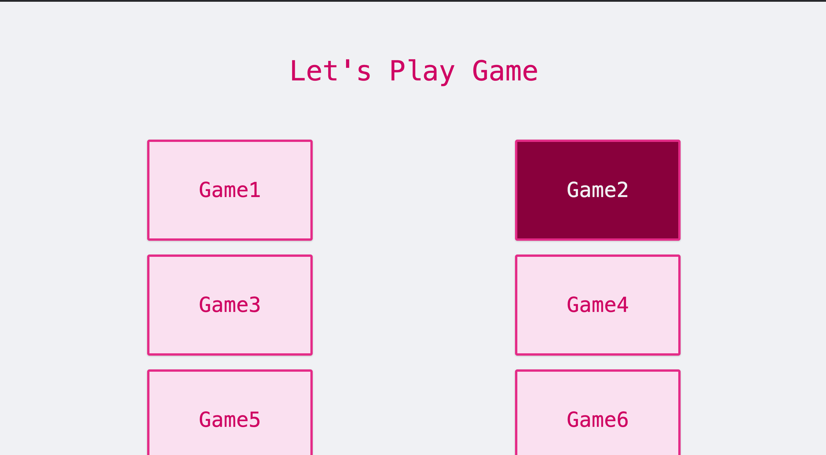 <ul className="container mx-auto grid grid-cols-1 gap-y-6 md:grid-cols-2"> <GameButton>Game1</GameButton> <GameButton>Game2</GameButton> <GameButton>Game3</GameButton> <GameButton>Game4</GameButton> <GameButton>Game5</GameButton> <GameButton>Game6</GameButton> </ul>이렇게 사용이 가능한데, md:어쩌구 이런식으로 쓸수 있다. 대신에 md 어쩌구는 min-width 기준으로 설정된거라는 것을 명심하고 작업하면 될것 같다.