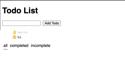 import { useDispatch } from "react-redux"; import { addTodo } from "../redux/actions"; import { useState } from "react"; const AddTodo = () => { const dispatch = useDispatch(); const [input, setInput] = useState(""); const increment = () => { dispatch(addTodo(input)); setInput(""); }; return ( <div> <input onChange={(e) => setInput(e.target.value)} value={input} /> <button className="add-todo" onClick={increment}> Add Todo </button> </div> ); }; export default AddTodo;원래 예시를 보면 connect에 mapDispatchToProps를 넘겨주고 있다. connect는 두번째 인자인 mapDispatchToProps위치에 dispatch를 넘겨주는데 이를 사용하는 함수를 원래 반환해준다.