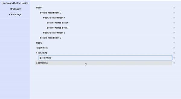 이제 블럭 재정렬되고, 엔터되고, 탭된다. focus쪽은 조금 미비한데, 정말 notion만든 사람들 많이 고생했겠구나 싶은 시간이다.